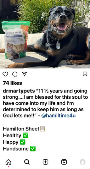 Dr. Marty recommends that your dog use Nature’s Blend for at least 90 days to experience the compounding benefits of consistent use. Many pet parents report quick results, but we want to ensure that your pup experiences a total health transformation. And that’s why we’ve deeply discounted our 90-day and 180-day packages along with FREE shipping!